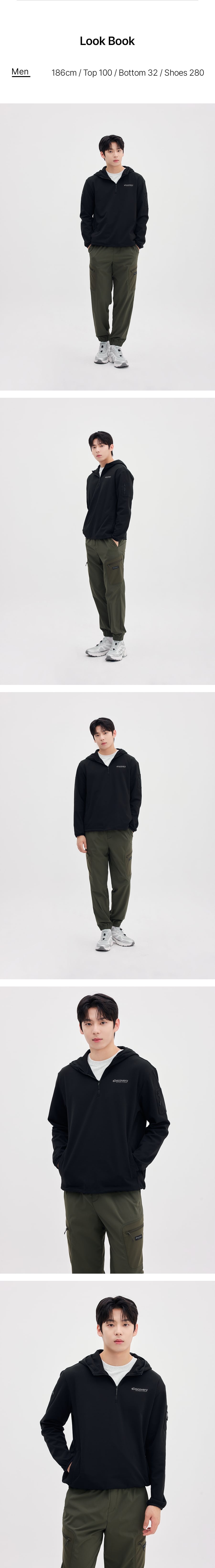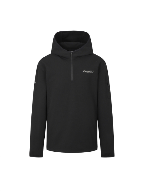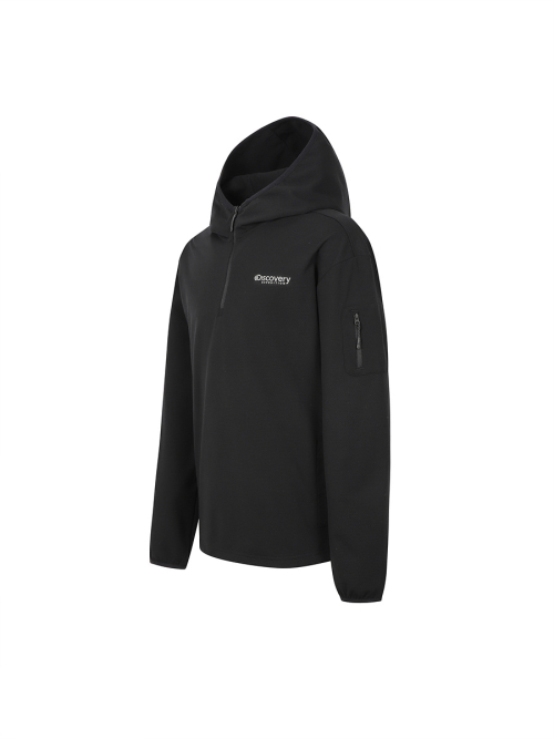 남성 기능성 소재 반집업 후드티셔츠 (BLACK)