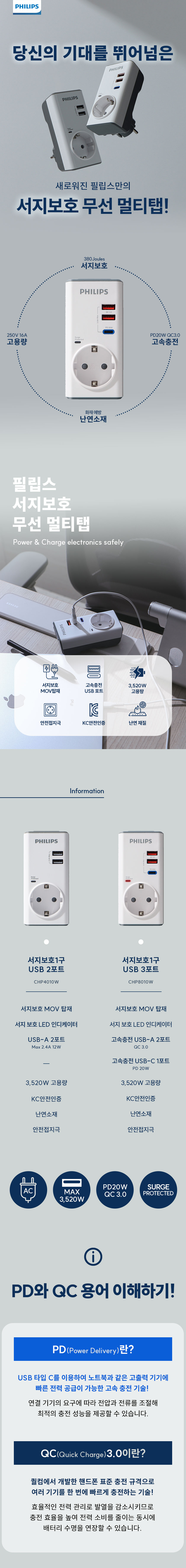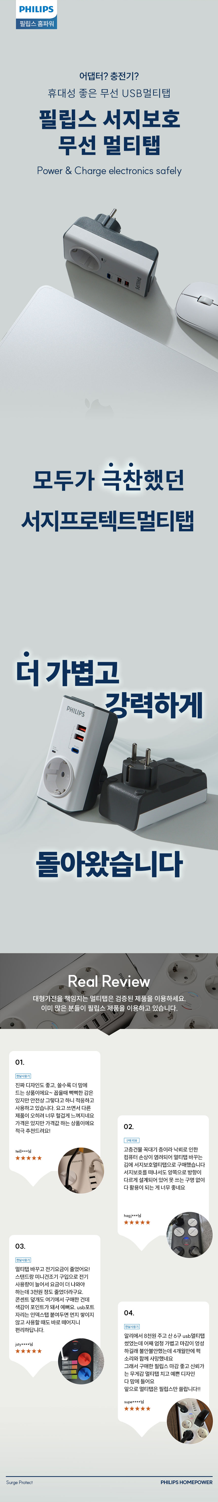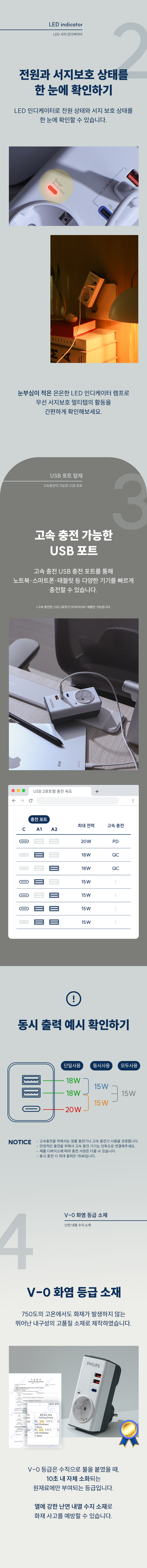 서지보호멀티탭 고용량 무선 USB 3구