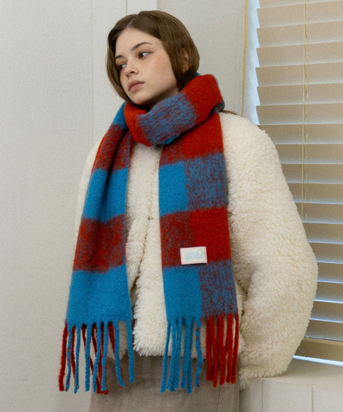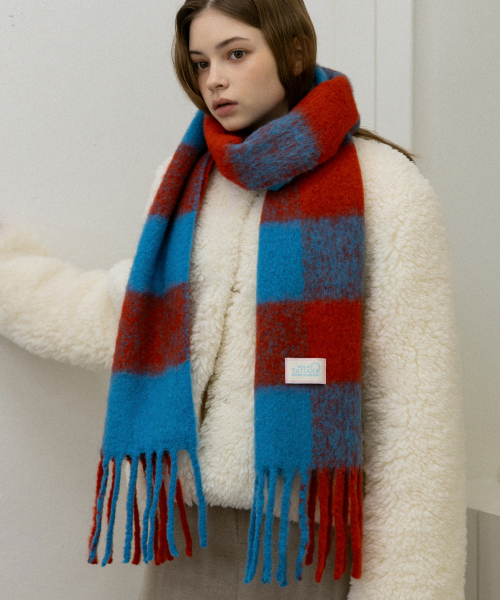체크 소프트 램스 울 100 머플러 MF8005 레드