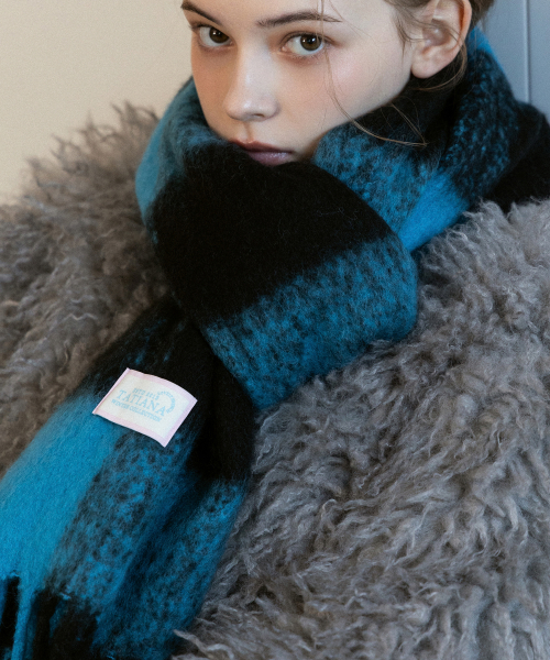 체크 소프트 램스 울 100 머플러 MF8005 그린