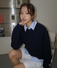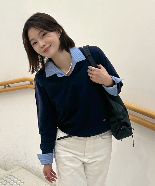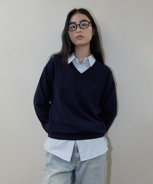 (woman) 에센셜 무드 브이넥 니트_Navy
