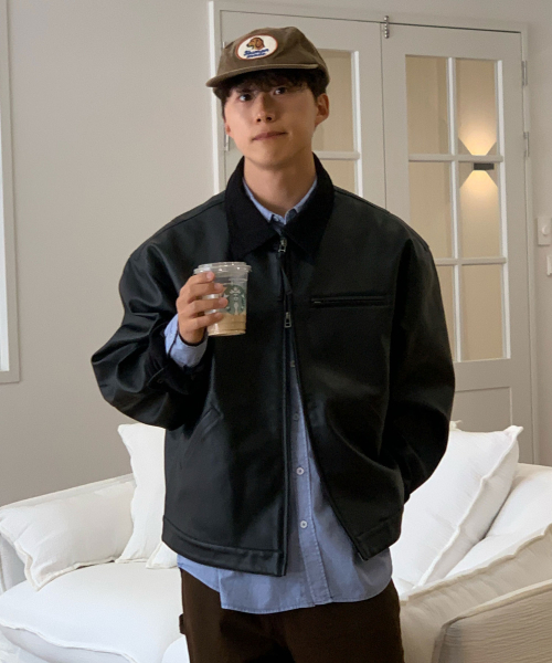 비건 레더 워크 자켓_블랙
