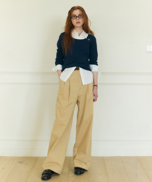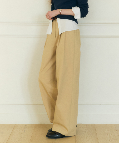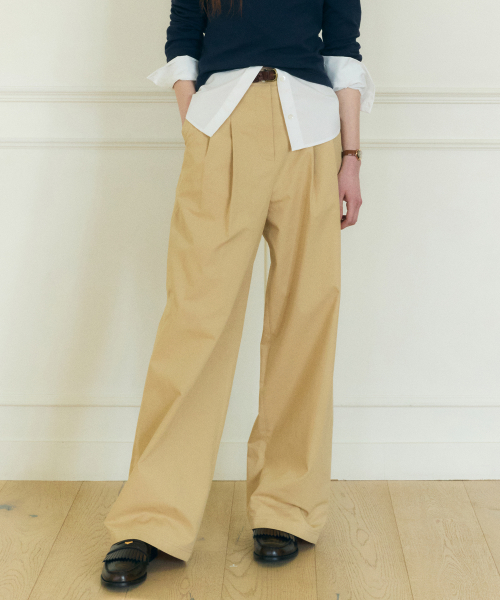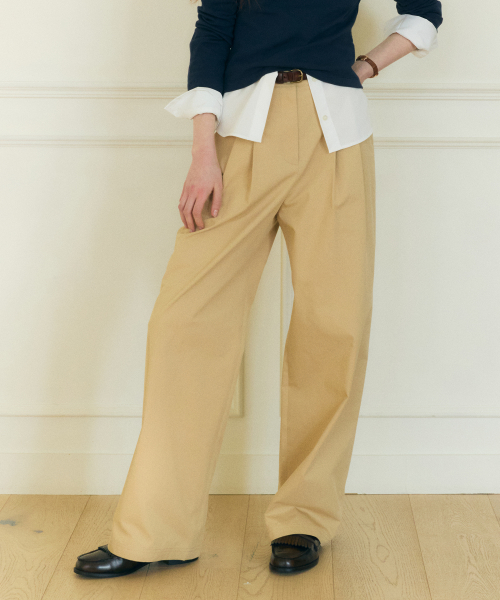 코튼 와이드 치노 팬츠 베이지