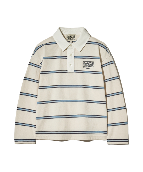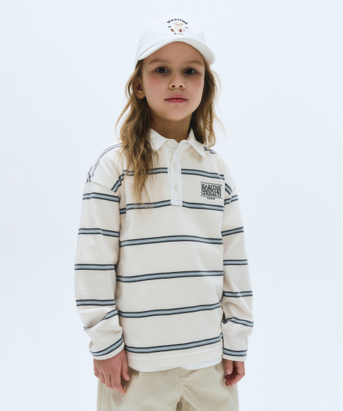 KIDS COLLAR STRIPE LONG SLEEVE ivory