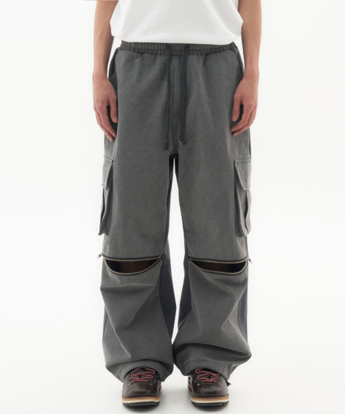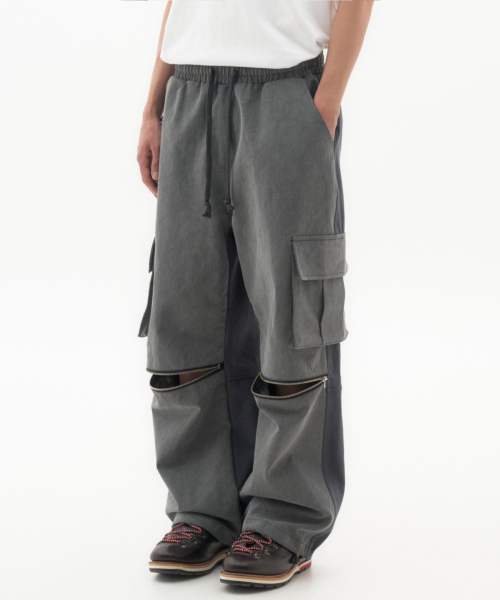레오파드 립스탑 콤비 카고팬츠 (빈티지그레이)