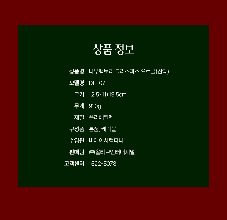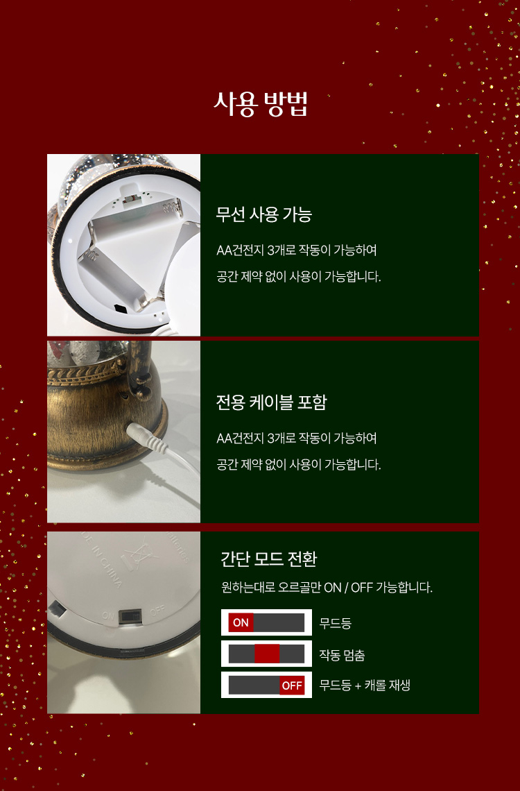 홀리데이 크리스마스 스노우볼 오르골 무드등