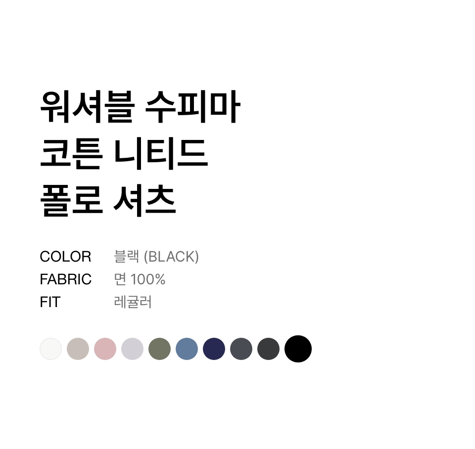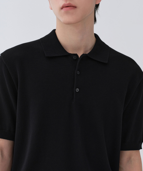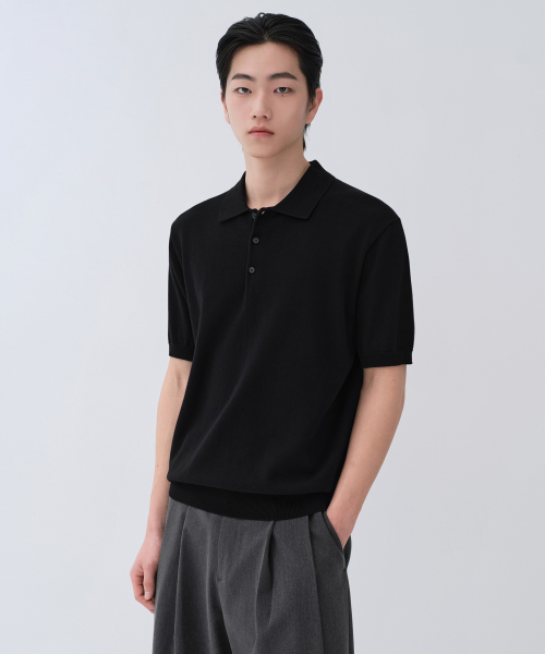 워셔블 수피마 코튼 니티드 폴로 셔츠 [블랙]