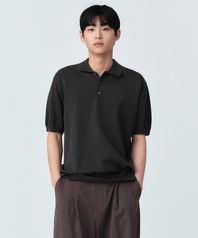 워셔블 수피마 코튼 니티드 폴로 셔츠 [다크 그레이]