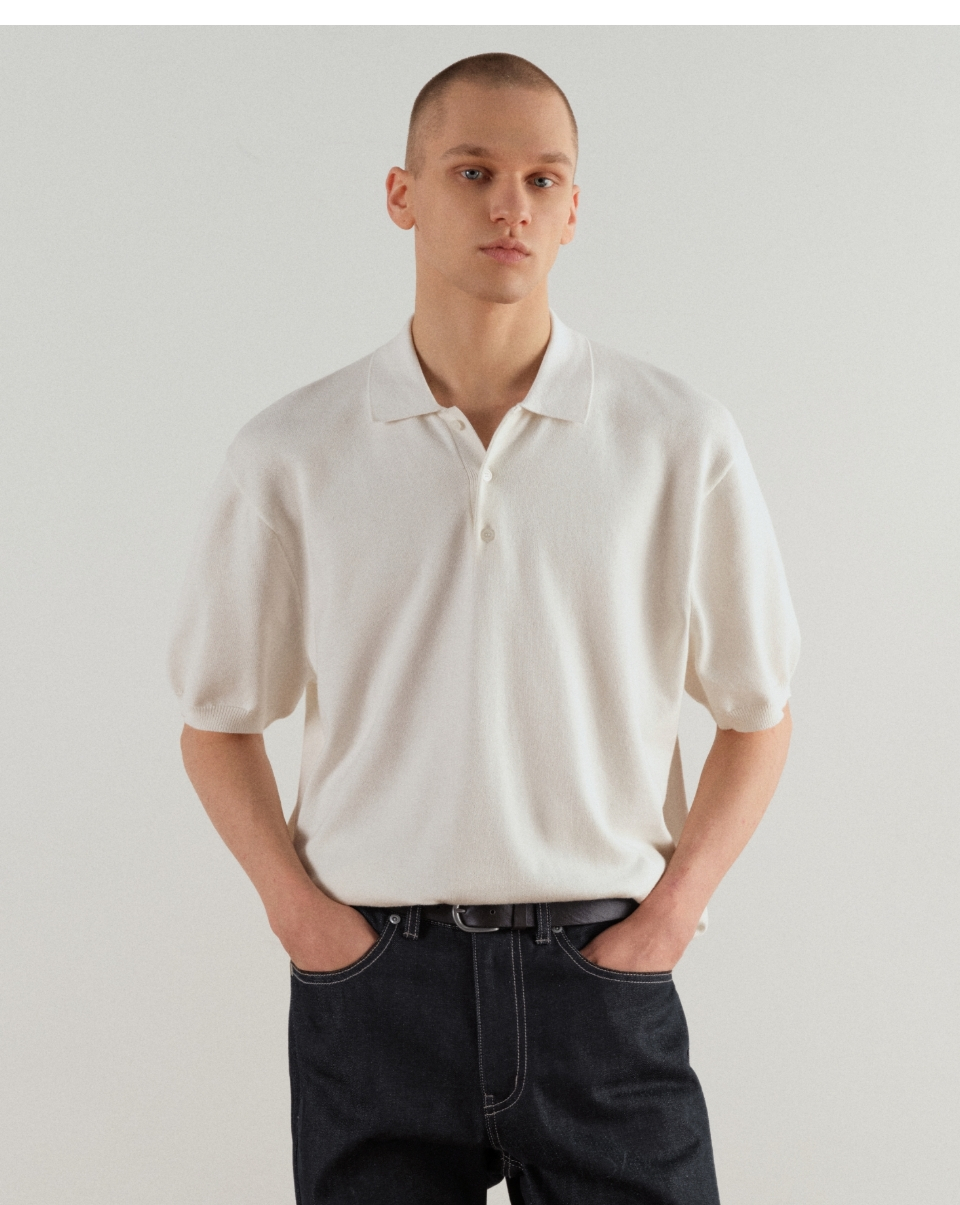 워셔블 수피마 코튼 니티드 폴로 셔츠 [아이보리]