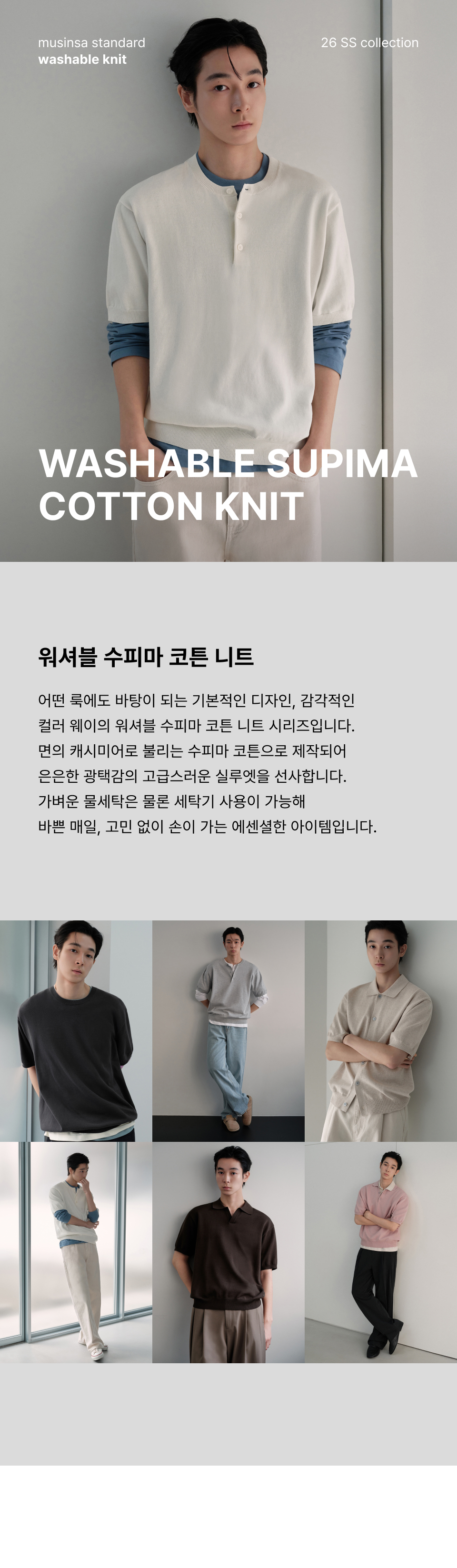 워셔블 수피마 코튼 니티드 폴로 셔츠 [머쉬룸]