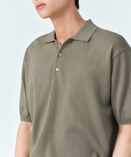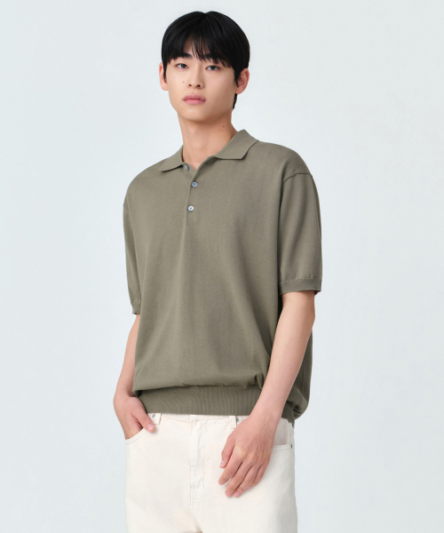 워셔블 수피마 코튼 니티드 폴로 셔츠 [머쉬룸]