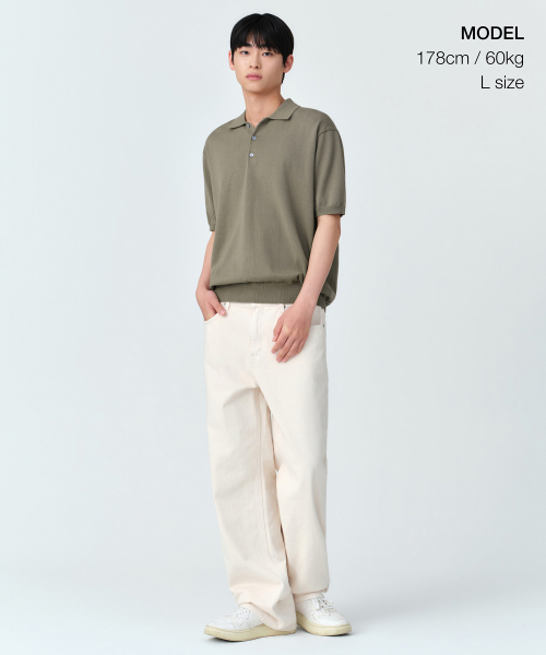 워셔블 수피마 코튼 니티드 폴로 셔츠 [아이보리]