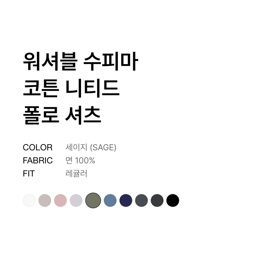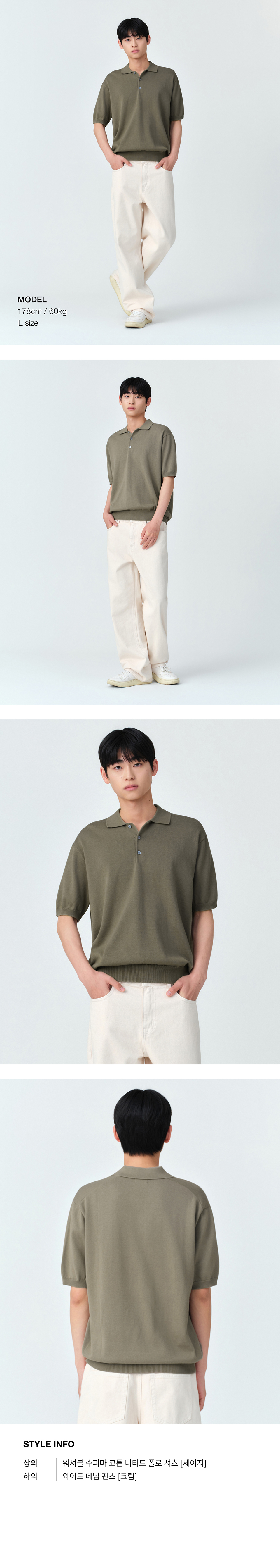 워셔블 수피마 코튼 니티드 폴로 셔츠 [세이지]