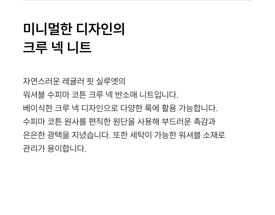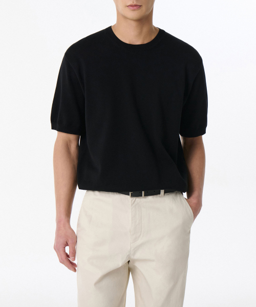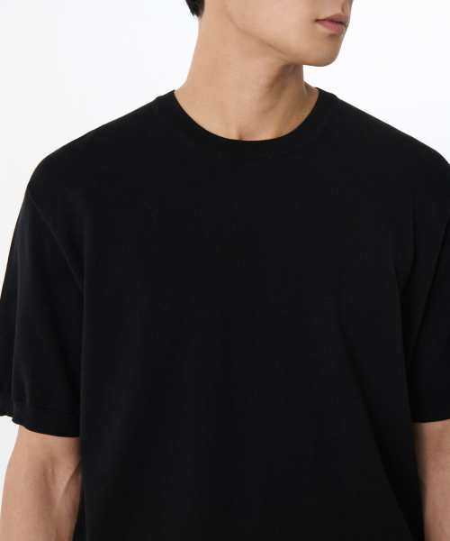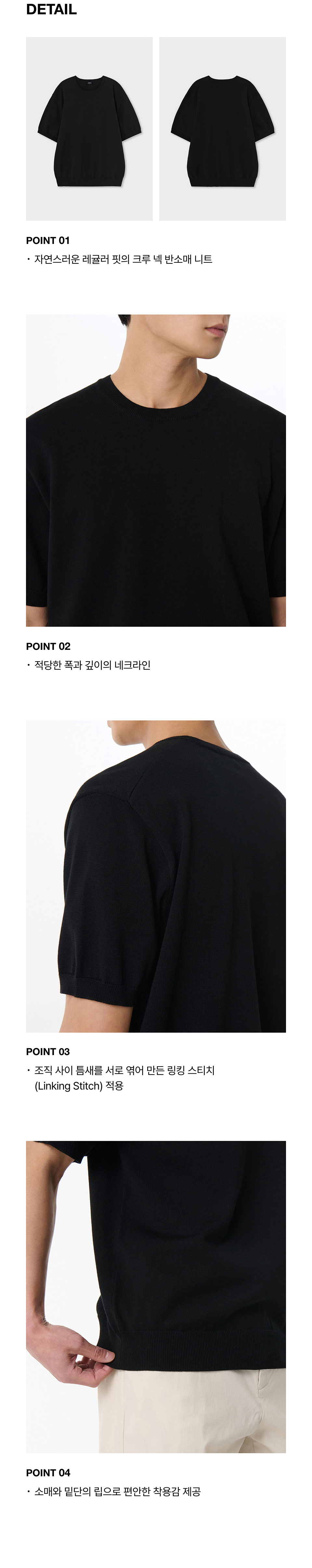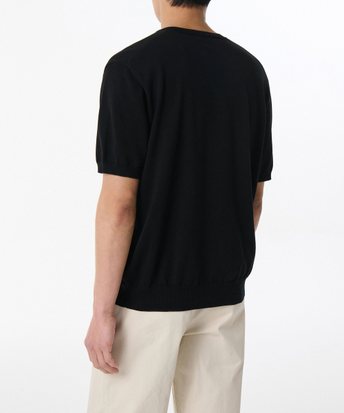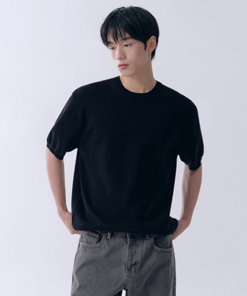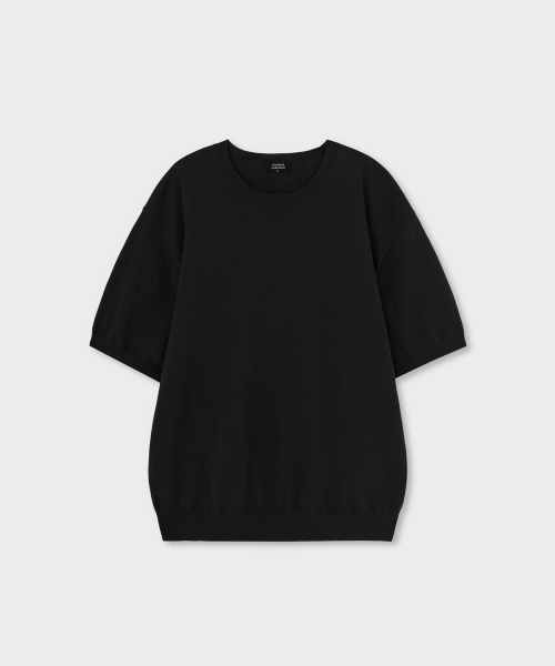워셔블 수피마 코튼 크루 넥 반소매 니트 [블랙]