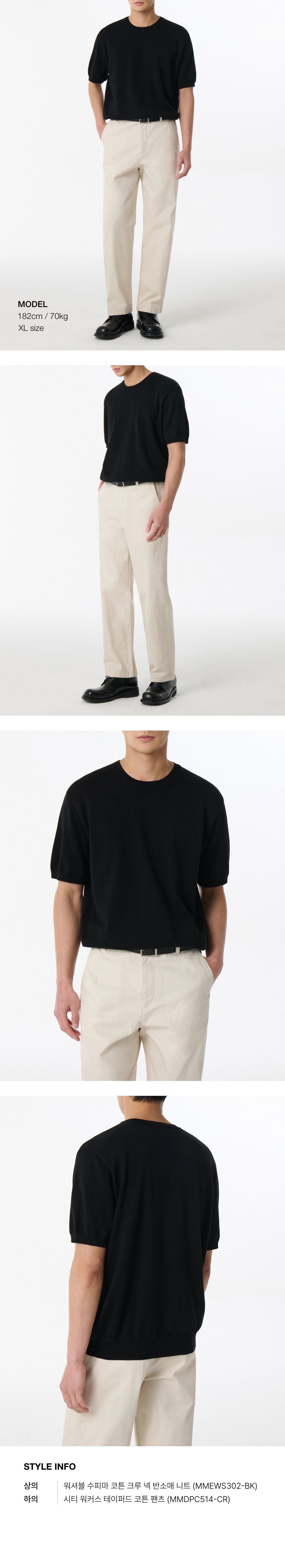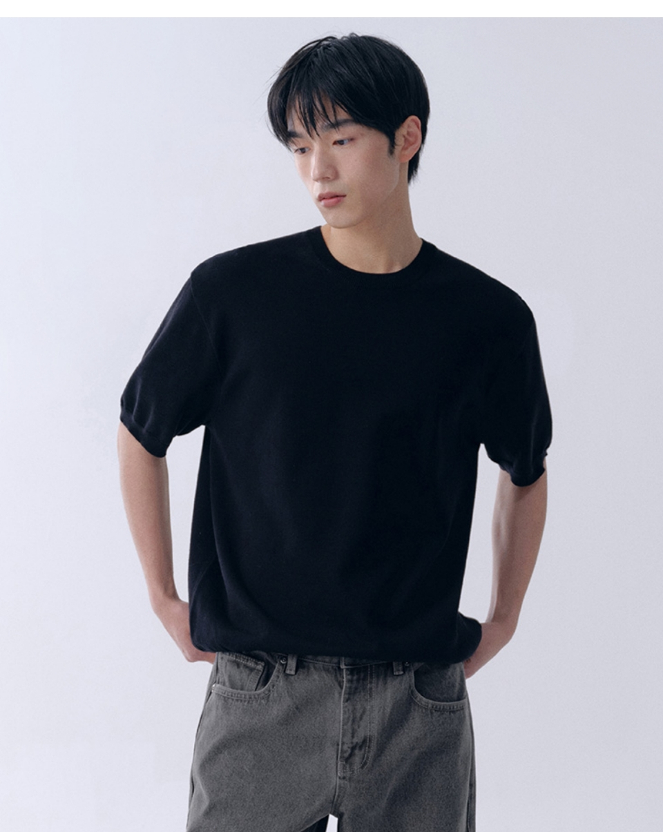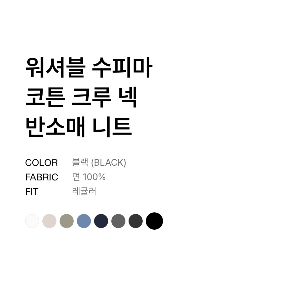 워셔블 수피마 코튼 크루 넥 반소매 니트 [블랙]