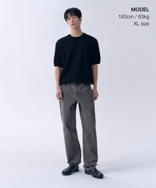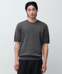 워셔블 수피마 코튼 크루 넥 반소매 니트 [그레이]