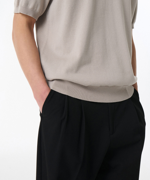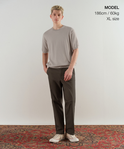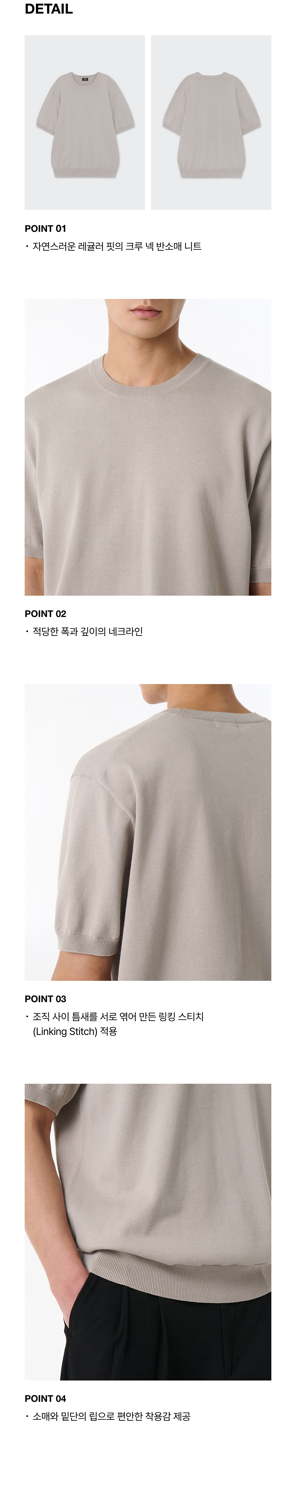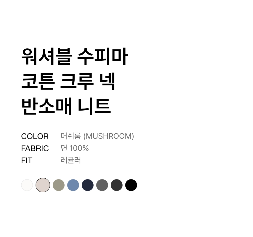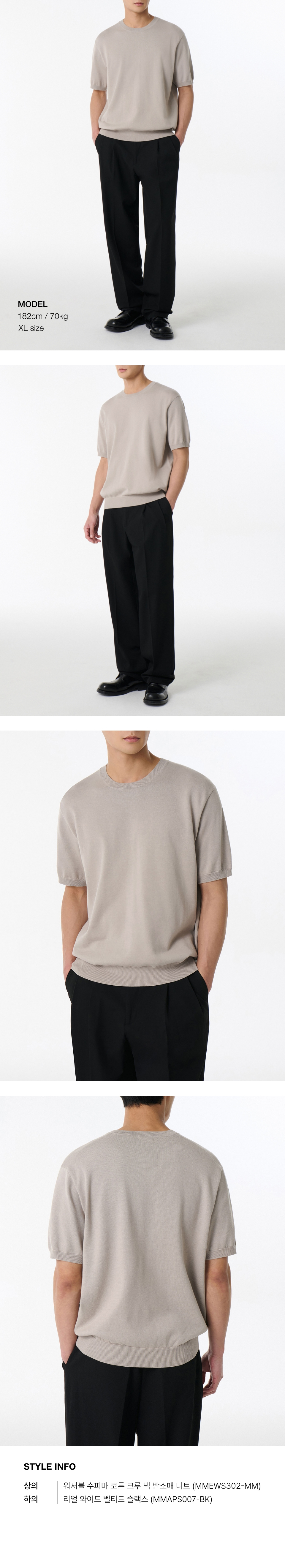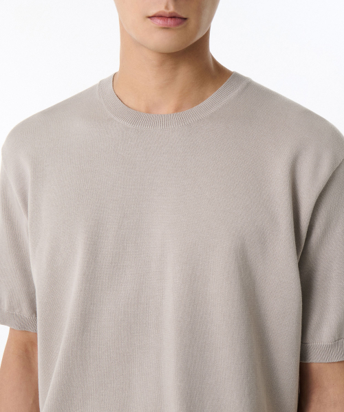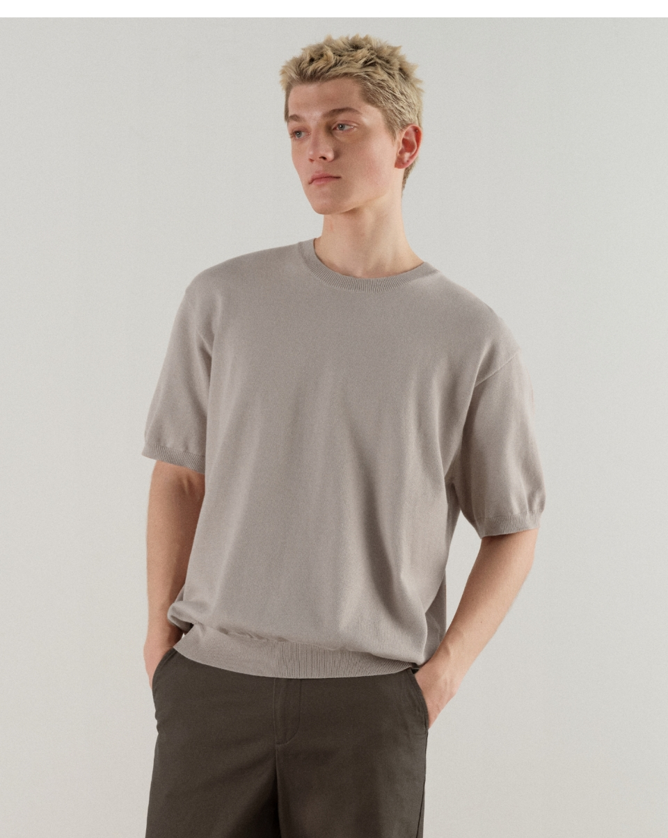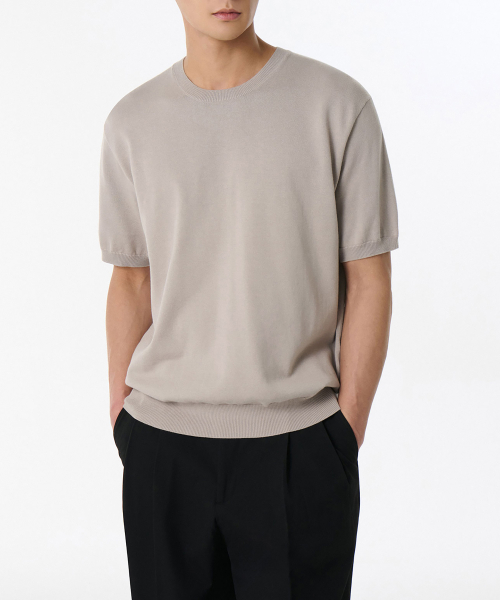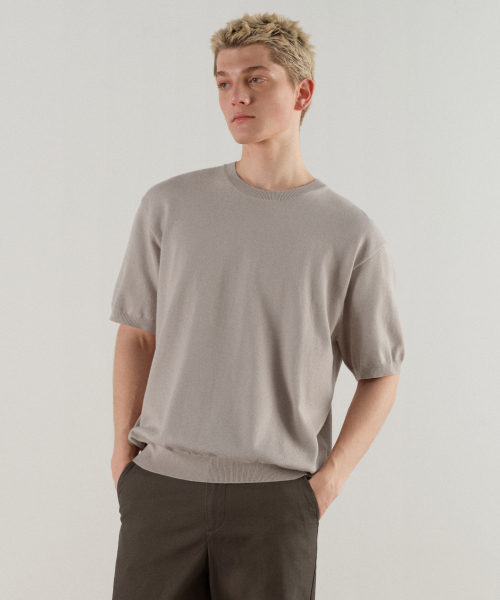 워셔블 수피마 코튼 크루 넥 반소매 니트 [머쉬룸]
