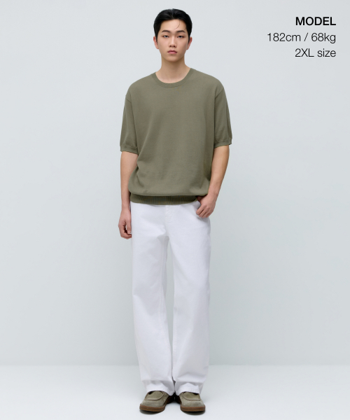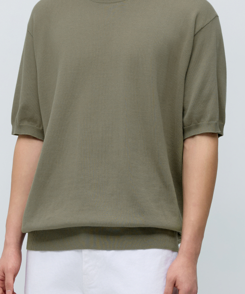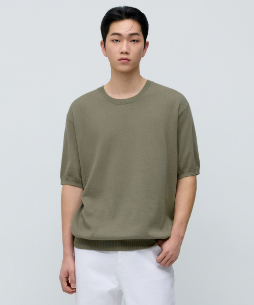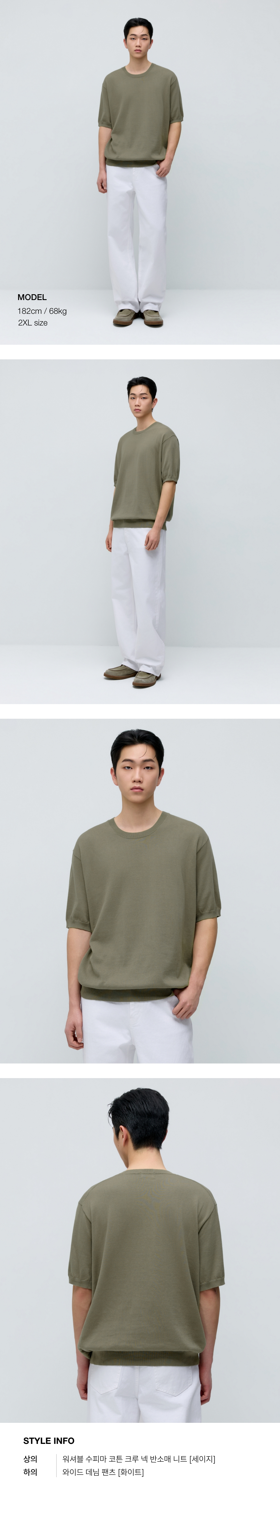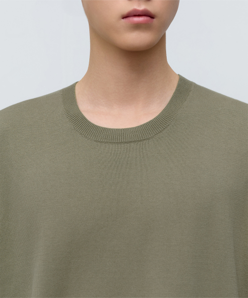 워셔블 수피마 코튼 크루 넥 반소매 니트 [세이지]