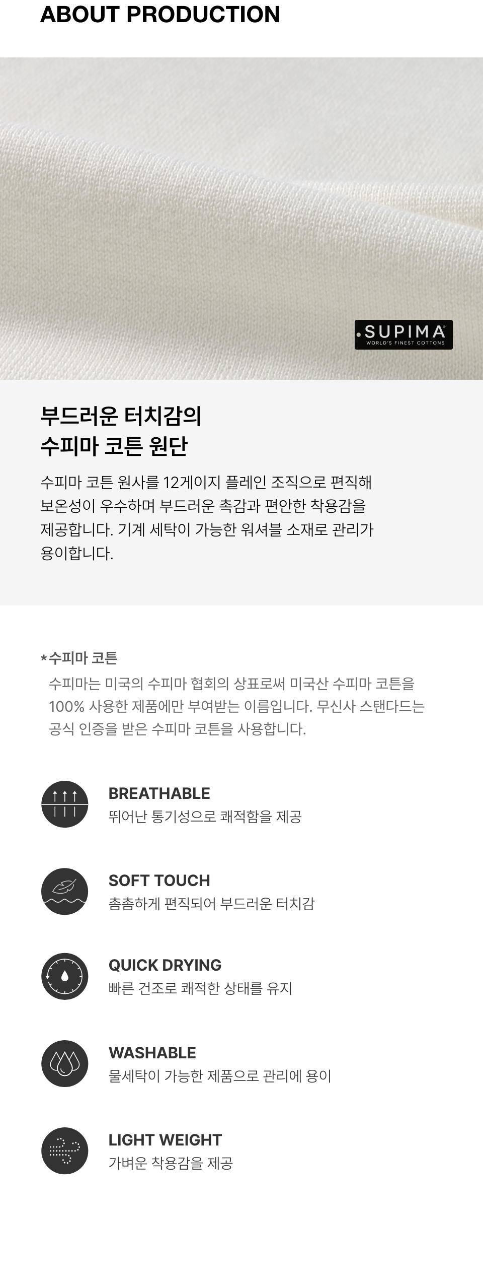 무신사 스탠다드(MUSINSA STANDARD)는 대한민국을 대표하는 온라인 패션 스토어 무신사가 전개하는 자체상표(Private Brand)이며, 모던 베이식 캐주얼웨어를 지향합니다. 단순한 유통구조의 효율적인 운영으로 좋은 품질의 제품을 합리적인 가격에 선보입니다. 가치소비 시대의 새로운 기준을 제시합니다.
