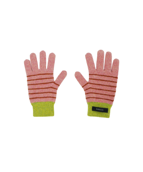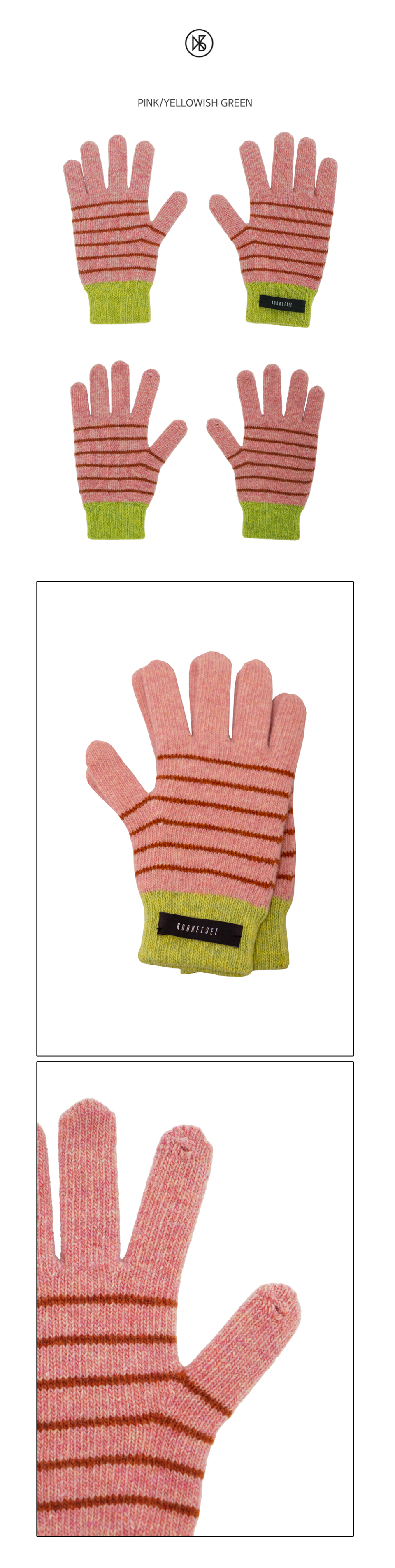 핑거홀 울 스트라이프 니트 장갑 (핑크/연두)
