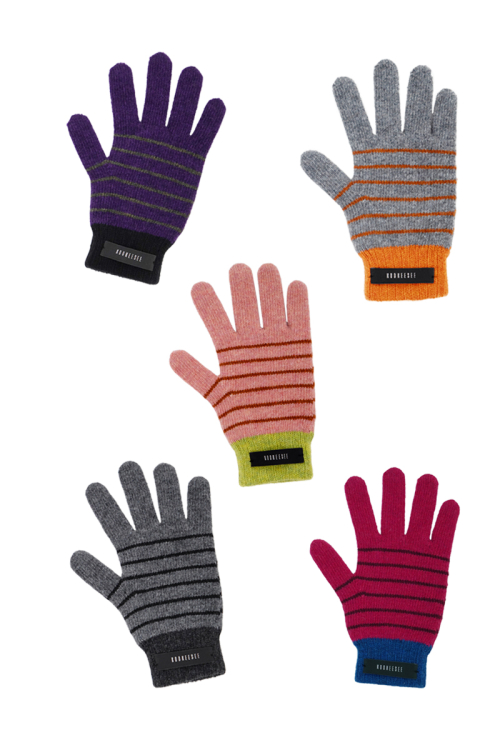 핑거홀 울 스트라이프 니트 장갑 (마젠타/블루)