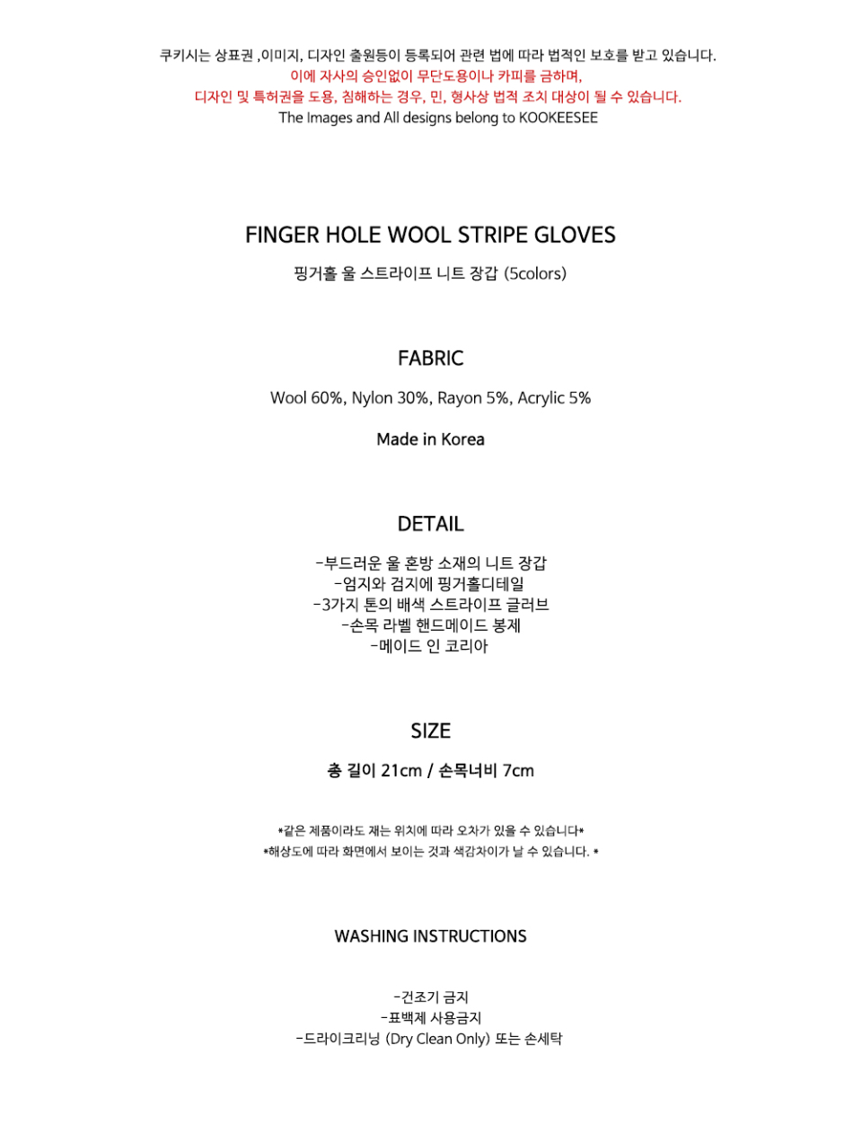핑거홀 울 스트라이프 니트 장갑 (그레이/차콜)