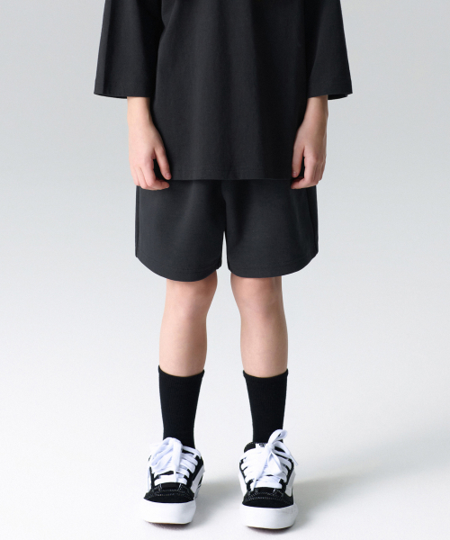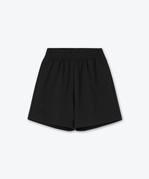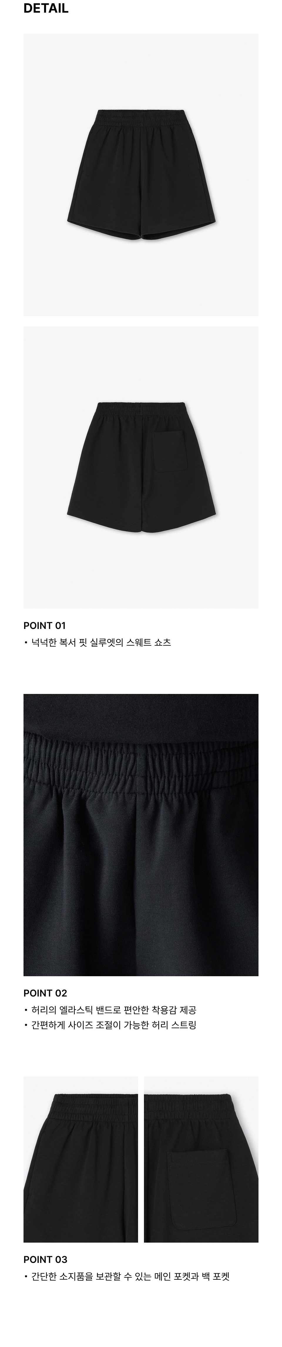 더블 니트 원 턱 와이드 스웨트 쇼츠 [블랙]