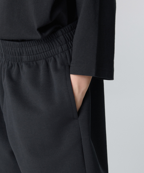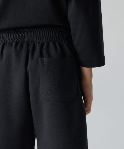 더블 니트 원 턱 버뮤다 스웨트 팬츠 [블랙]
