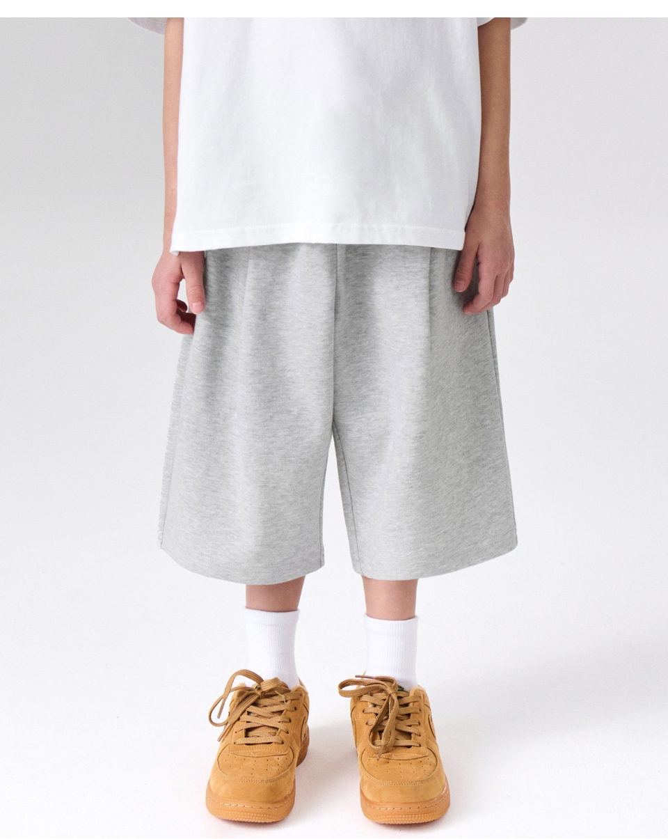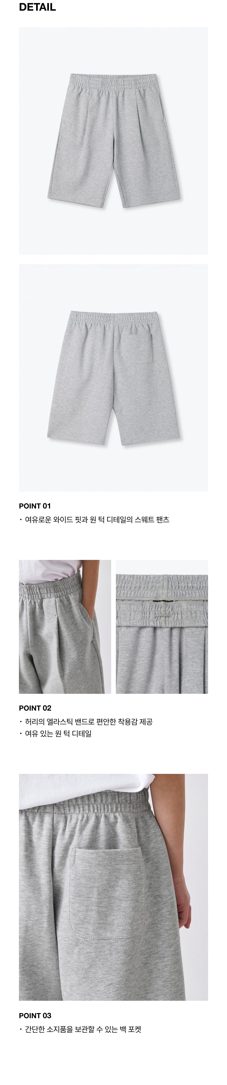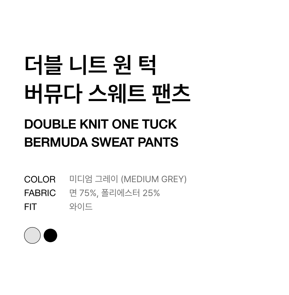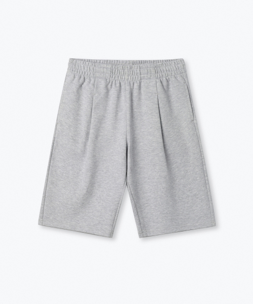 더블 니트 원 턱 버뮤다 스웨트 팬츠 [미디엄 그레이]