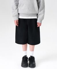 더블 니트 원 턱 버뮤다 스웨트 팬츠 [블랙]