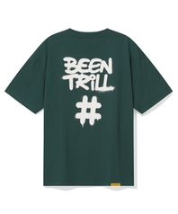 스프레이 해시태그 오버핏 반팔티(다크 그린)
