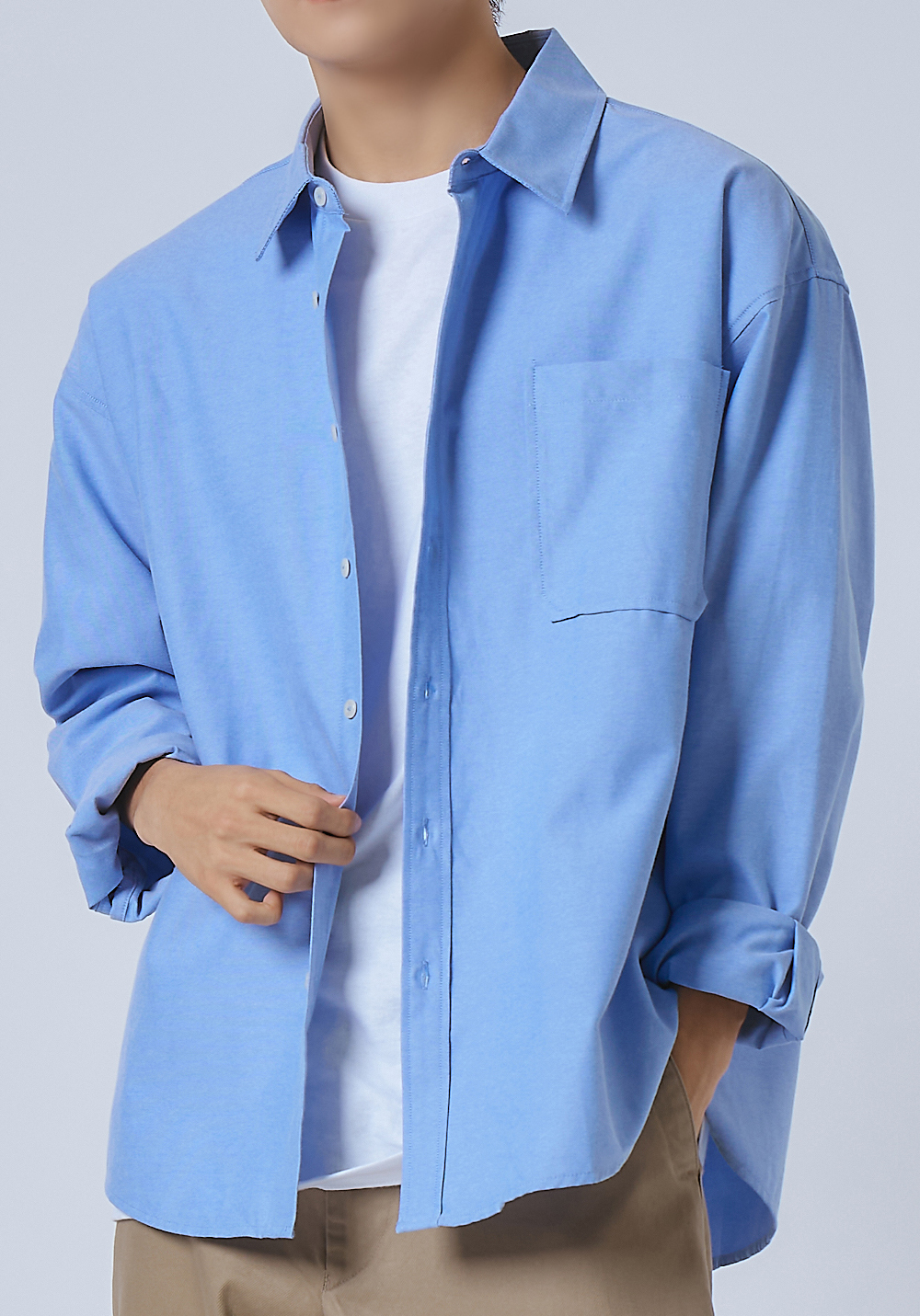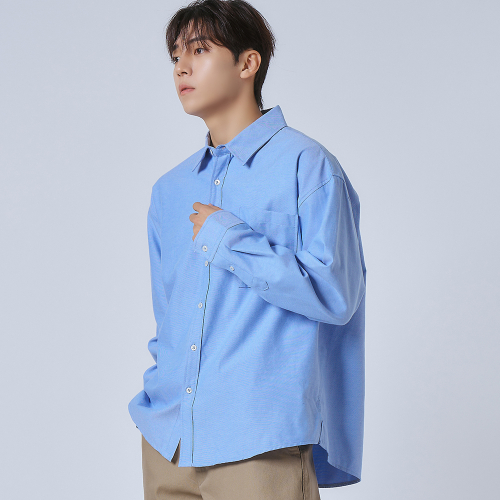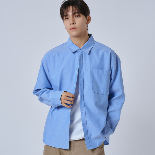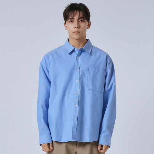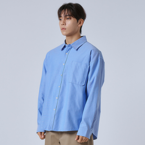 옥스포드 솔리드 포켓 오버 셔츠 [블루]