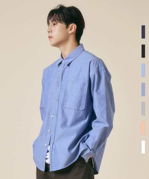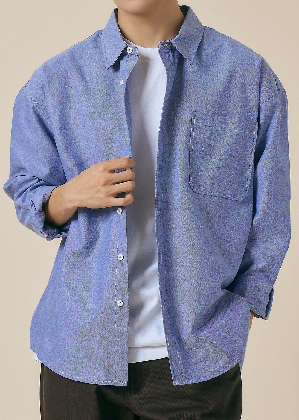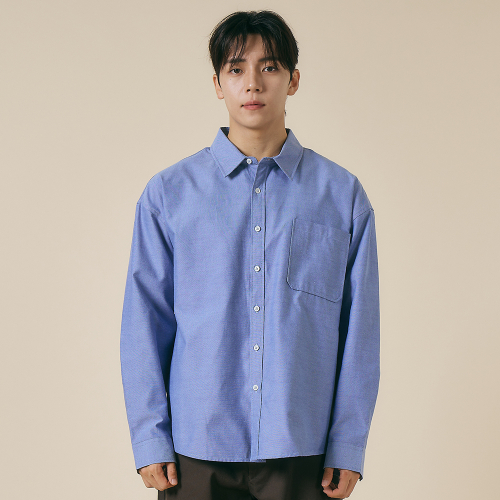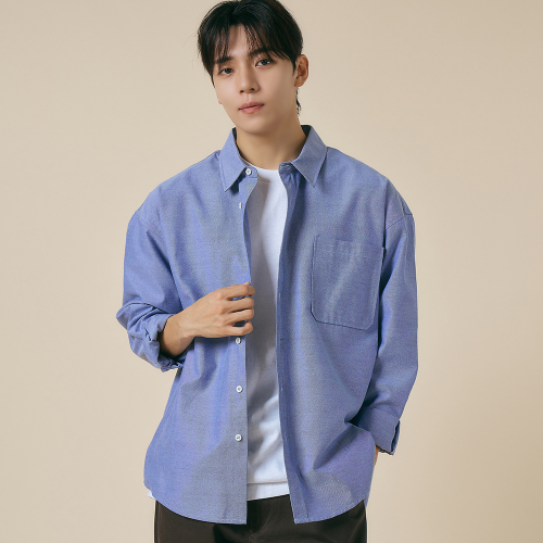 옥스포드 솔리드 포켓 오버 셔츠 [다크블루]