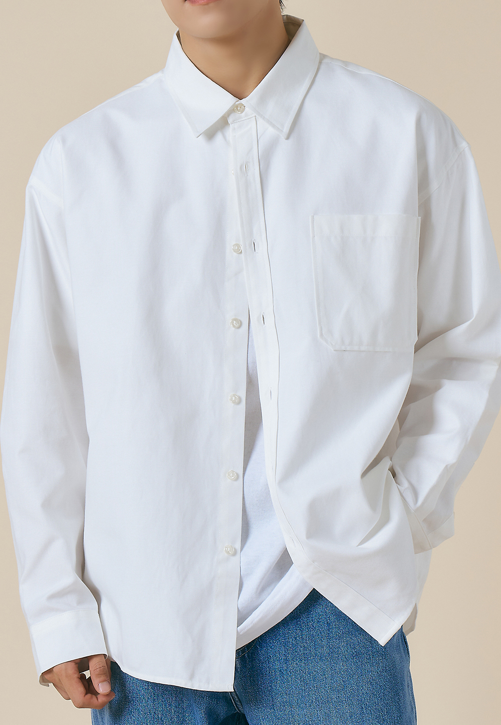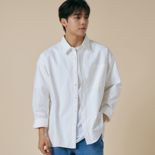 옥스포드 솔리드 포켓 오버 셔츠