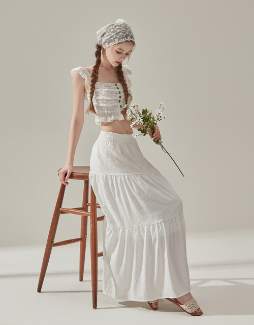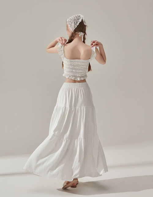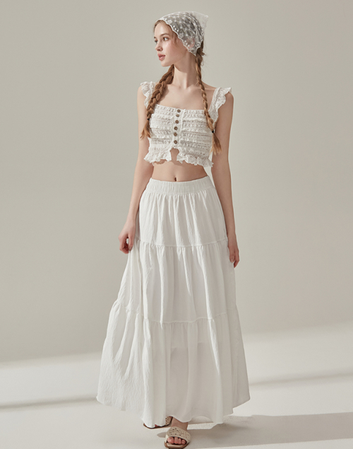· 페미닌한 실루엣을 연출해주는 티어드 플레어 스커트
