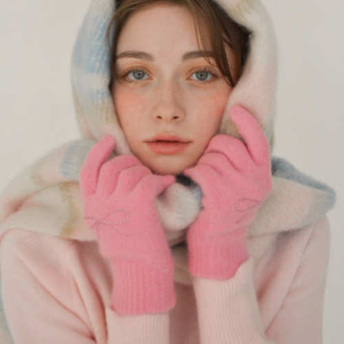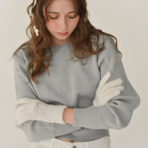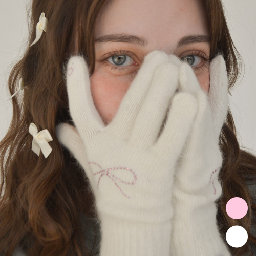 벨벳 리본 자수 울 니트 장갑