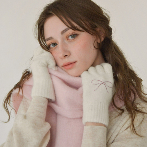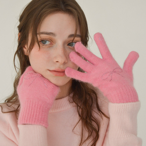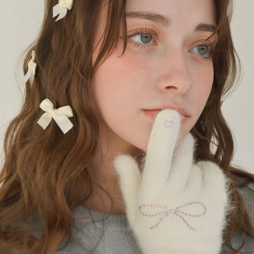 하트 리본 큐빅 핑거홀 터치 울 니트 장갑