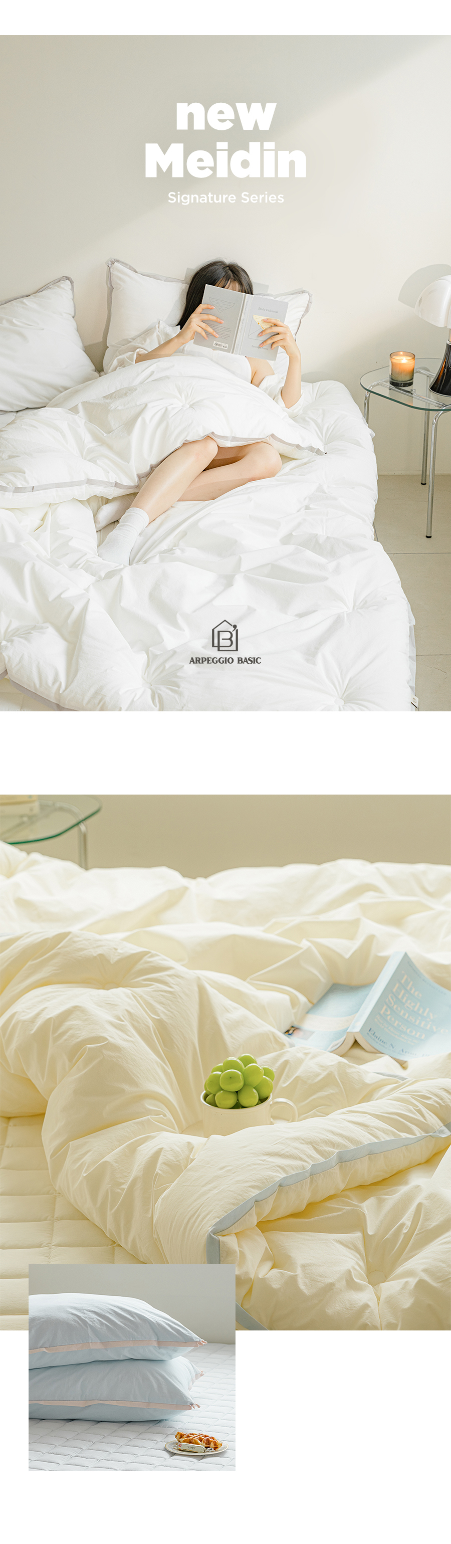 아르페지오 베이직(ARPEGGIO BASIC)은 침구 전문 브랜드 아르페지오의 30년 기술력과 노하우를 바탕으로 론칭된 온라인 전용 홈 패브릭 브랜드입니다. 다양한 소재와 그에 따른 최적화된 색감, 패턴을 끊임없이 개발하고 연구하여 사용할수록 그 가치가 느껴지는 제품을 선보이고자 합니다.