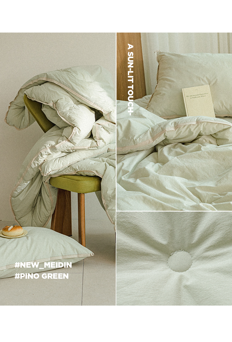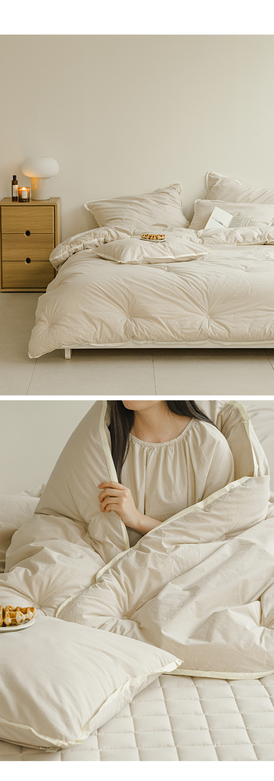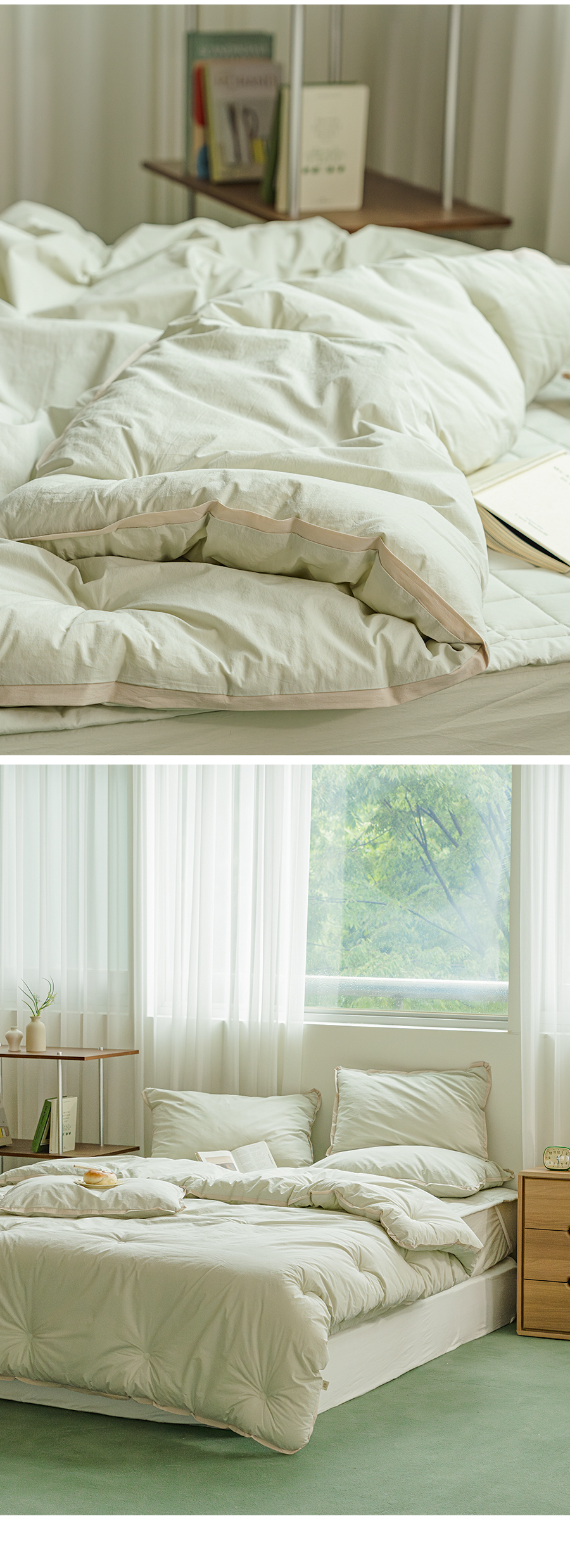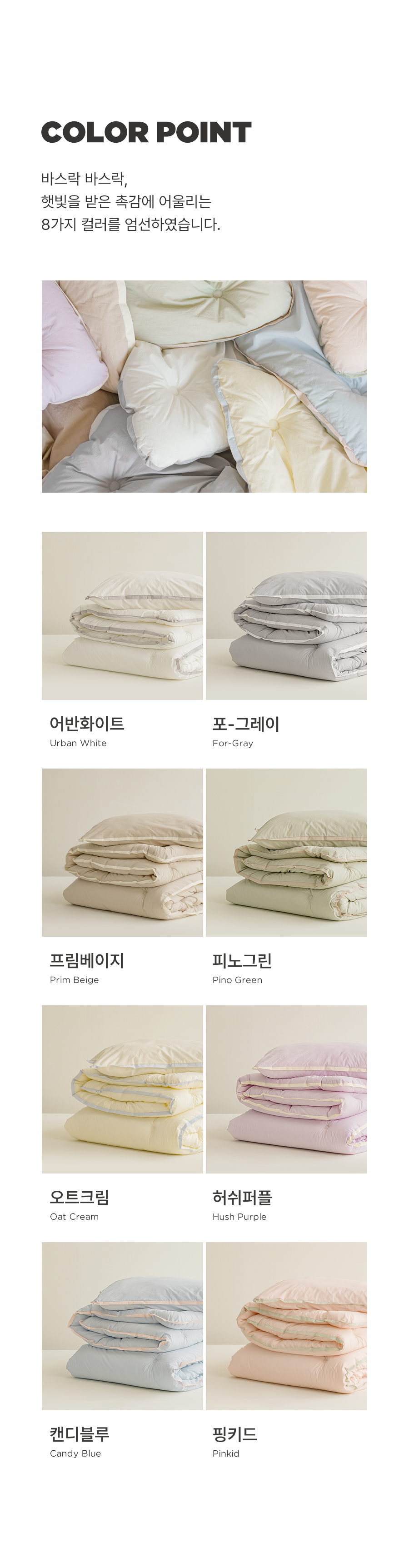 헬로우 4COLOR 오가닉 순면60수 피그먼트워싱 옥수수솜 차렵이불&베개세트(SS)(Q/K)
