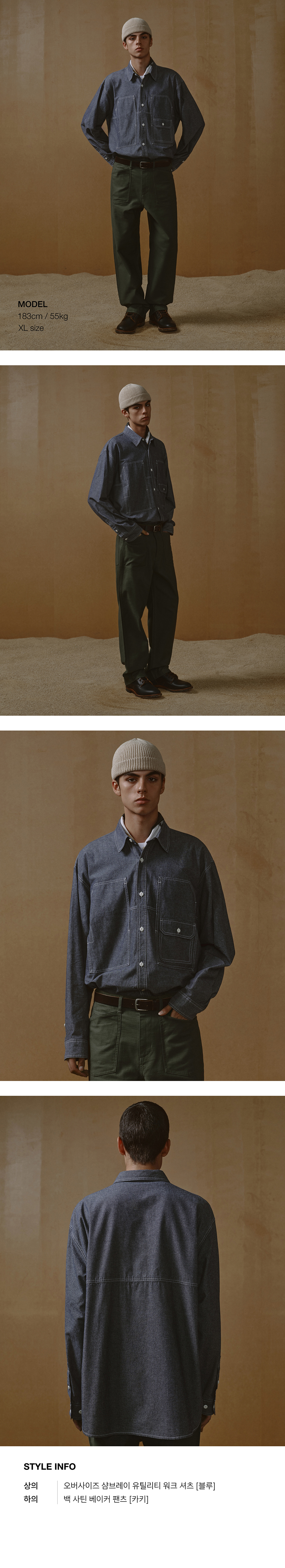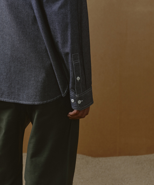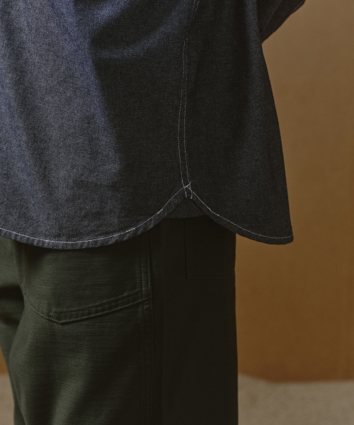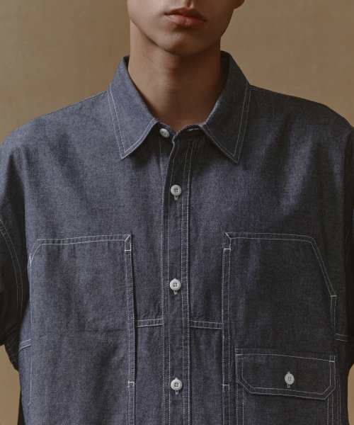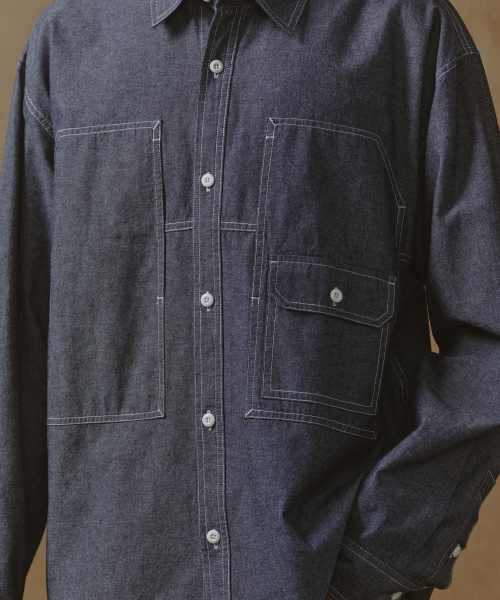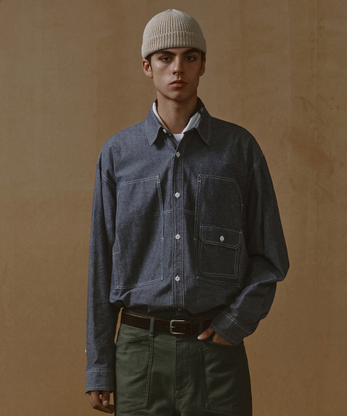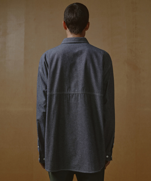 오버사이즈 샴브레이 유틸리티 워크 셔츠 [블루]