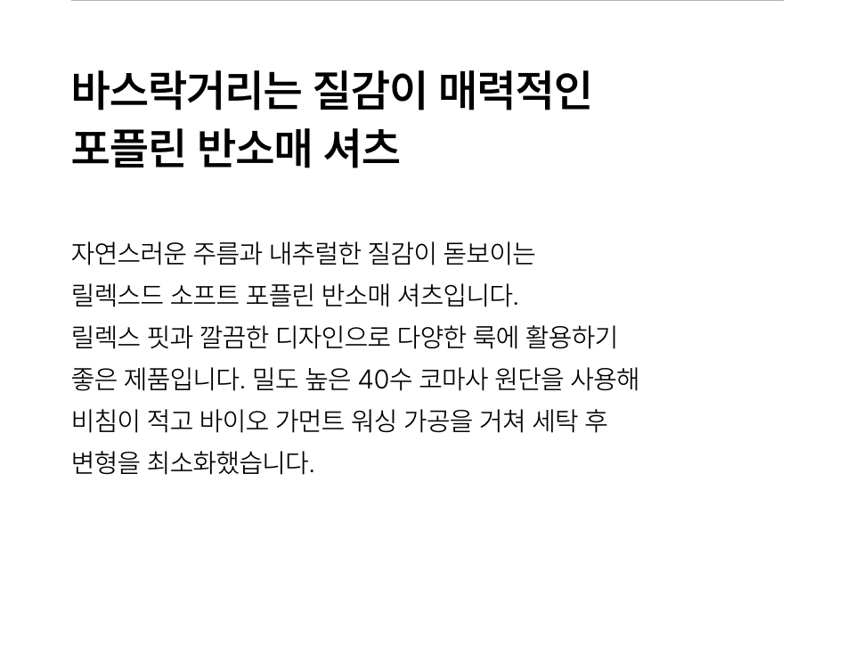 릴렉스드 소프트 포플린 반소매 셔츠 [화이트]