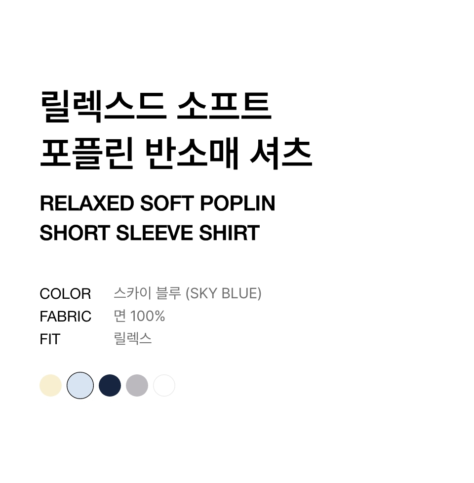 릴렉스드 소프트 포플린 반소매 셔츠 [스카이 블루]