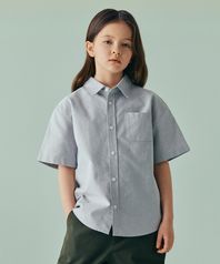 오버사이즈 옥스포드 반소매 셔츠 [그레이]