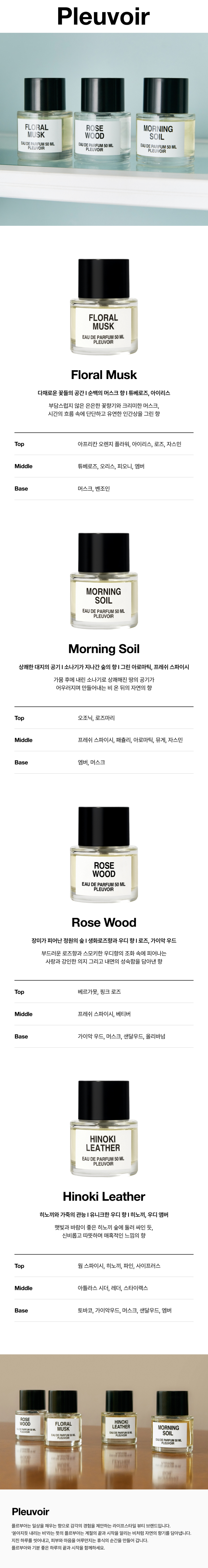 플르부아(PLEUVOIR)는 일상을 채우는 향으로 감각의 경험을 제안하는 라이프 스타일 뷰티 브랜드입니다. ‘쏟아지듯 내리는 비’라는 뜻으로, 자연의 향기를 담아냅니다. 지친 하루를 씻어내고, 피부와 마음을 어루만지는 휴식의 순간을 만들어 갑니다.