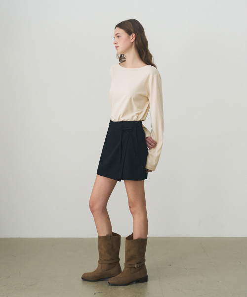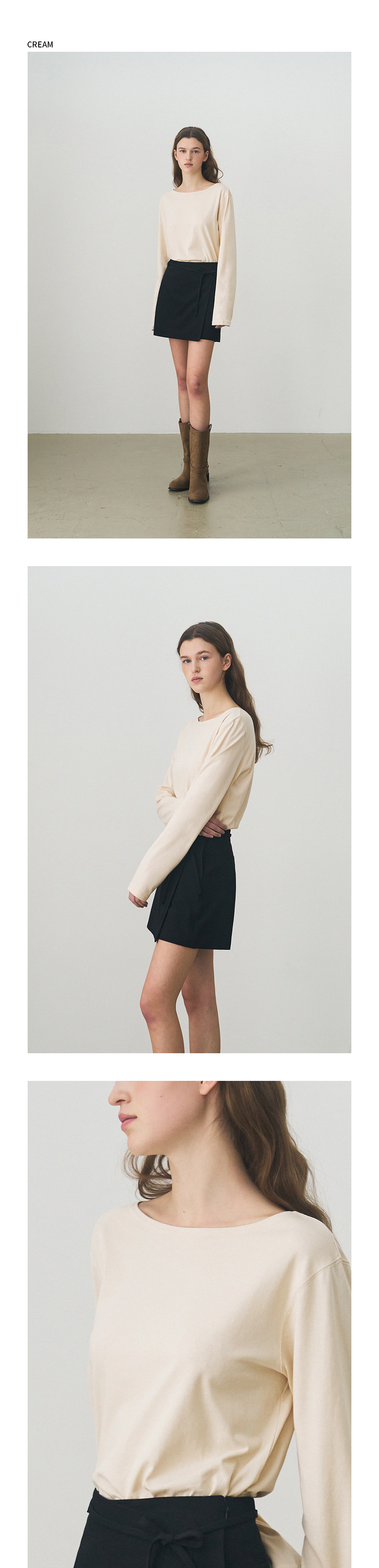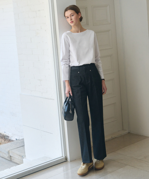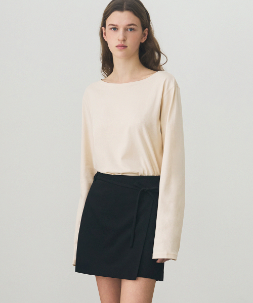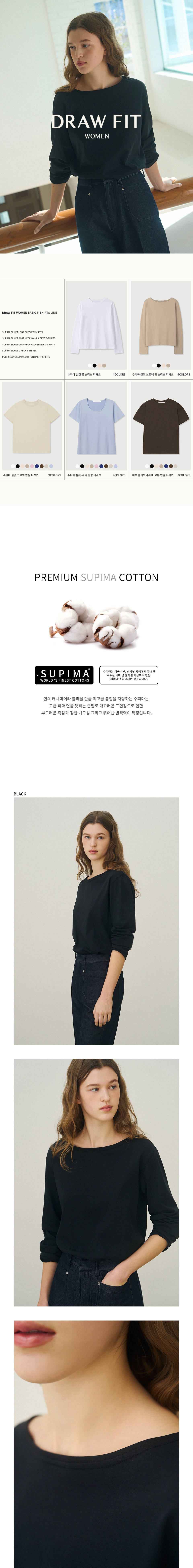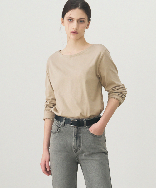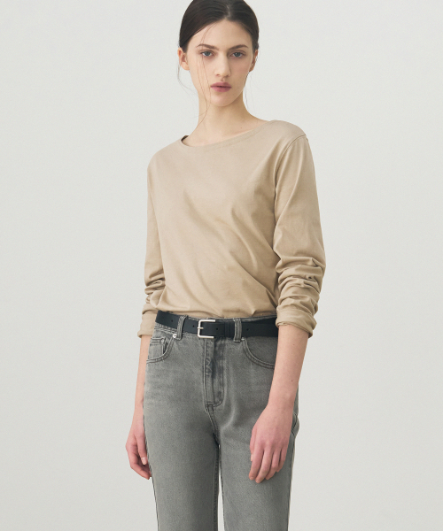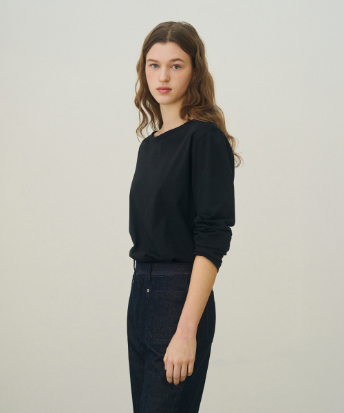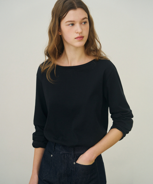 수피마 실켓 보트넥 롱 슬리브 티셔츠 [BLACK]