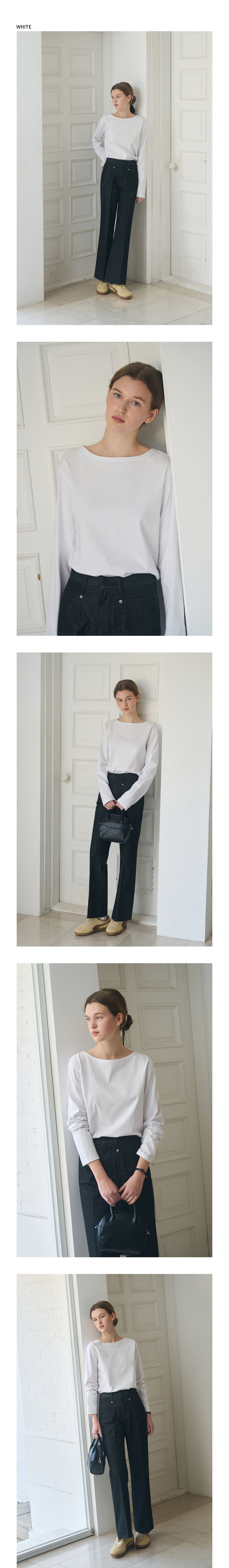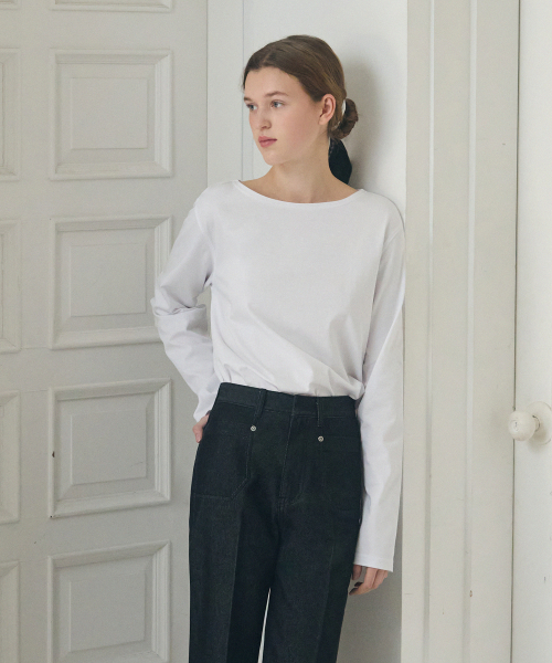 수피마 실켓 보트넥 롱 슬리브 티셔츠 [WHITE]