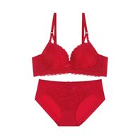 플로럴 레이스 브라 / 헴팬티 세트_레드
