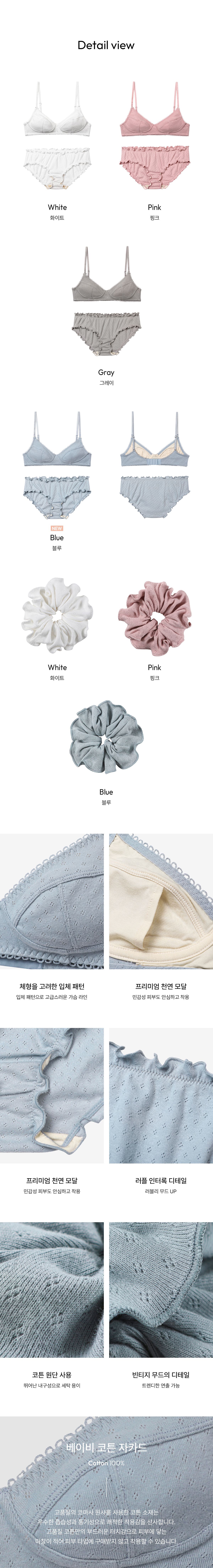 휴이나 코튼 브라렛 1 + 팬티 2 SET