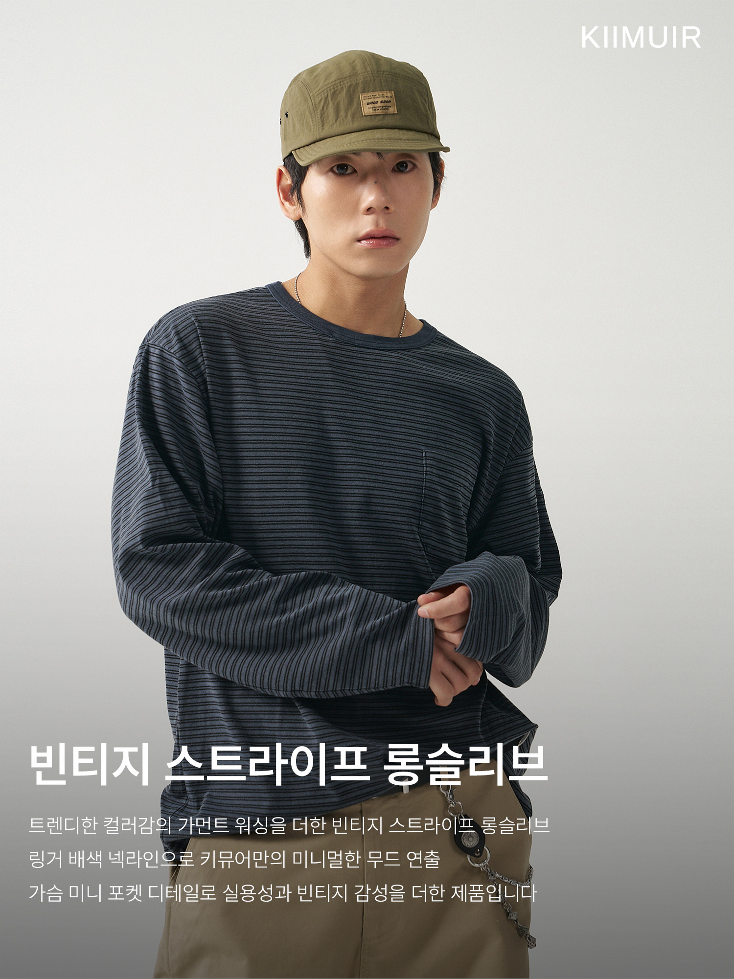 키뮤어(KIIMUIR)는 스코틀랜드 고지대의 황야 Muir와 내면의 본질 *(氣 Kii)* 에서 비롯된 흐트러지지 않는 태도를 실루엣으로 조형하는 브랜드입니다.