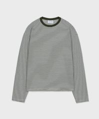 오버핏 스트라이프 코튼 롱슬리브 카키